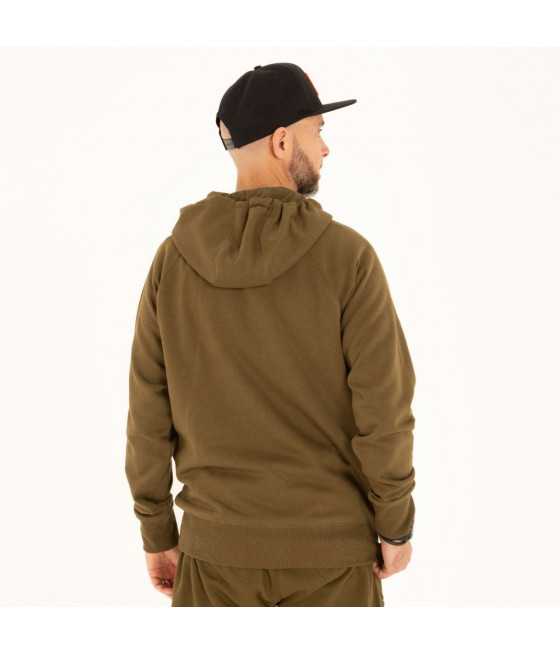 Mikina má dvojfarebné, silikónom zakončené sťahovacie šnúrky, raglánový strih pre lepší pohyb pri nahadzovaní a klokanie vrecko na prednej strane s obojstranným prístupom. Rukávy a spodný lem sú zakončené elastickými manžetami.