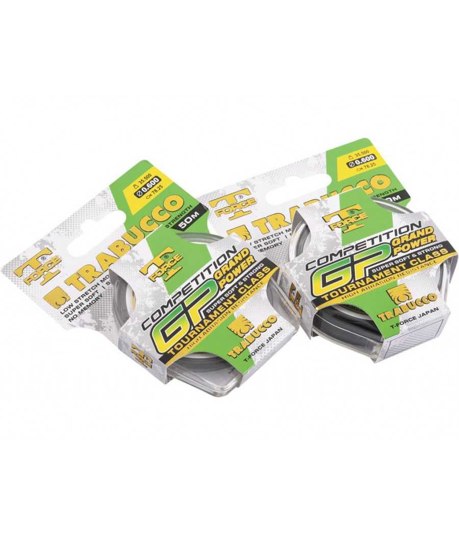 T-Force Competition GP je "Hi-tech" náväzcový vlasec vyrobený v Japonsku. Vďaka svojej tvrdosti, absencii pamäte a povrchovej úprave je ideálnou voľbou pre koncové náväzce.