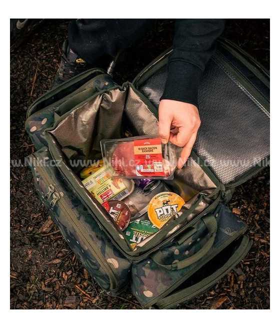 Taška na potraviny Trakker NXC Chilla Session je priamo navrhnutá na uchovávanie potravín, ktoré sú chladené izolovanými stenami s vysokou hustotou s ľahko čistiteľnou fóliou. Tá sa môže pochváliť super-tepelnými vlastnosťami a maximálnym výkonom, aby sa zabezpečilo, že vaše potraviny zostanú čo najčerstvejšie. Vnútri nájdete elastické pásky na zaistenie sáčkov s ľadom alebo napríklad fliaš. Na spodnej strane veka je odolné sieťované vrecko na zips.