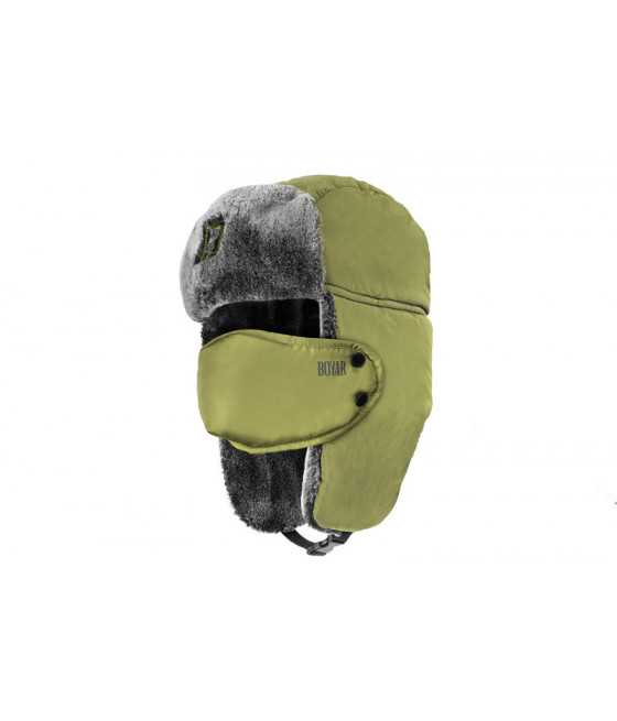 Baranica navrhnutá aj do tých najväčších mrazov. BOYAR v sebe ukrýva hneď niekoľko vychytávok, ktoré pomôžu udržať váš tepelný komfort počas studených zimných dní. Navrhnutá je v khaki farbe s čiernymi doplnkami čím predstavuje ideálnu pokrývku hlavy či už ste na rybách, alebo poľovačke. Vďaka štýlovému vyhotoveniu sa však výborne hodí aj na bežné nosenie. Vnútornú výstelku tvorí na dotyk veľmi jemný a hrejivý česaný polyesterový materiál čiernej farby. Na “ušiach“ a nad čelom nadobúda tento materiál šedý odtieň s lesklým nádychom, čo efektne dopĺňa celý dizajn baranice. V spodnej časti je klip, umožňujúci zopnutie pod bradou čím je únik tepla takmer úplne eliminovaný. Nespornou výhodou je taktiež odopínateľné prekrytie úst a nosa vďaka ktorému v prípade veľkých mrazov nemusíte dýchať ľadový vzduch.