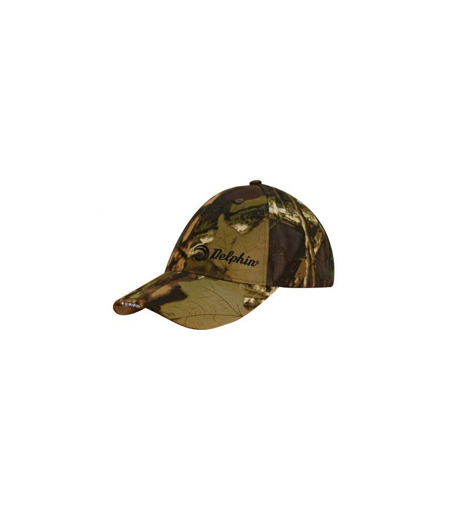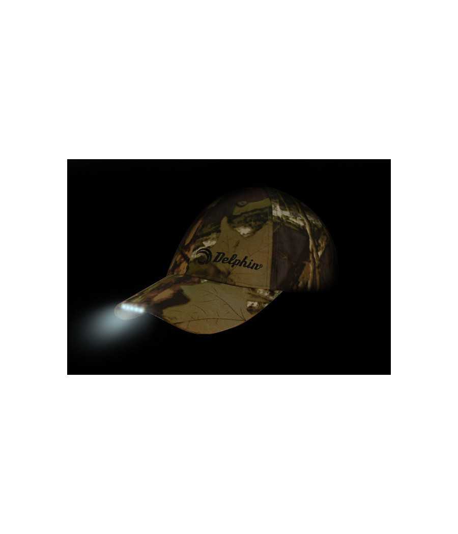 Letná čiapka- šiltovka s LED diódami od značky Delphin vo vyhotovení kamufláž. Šiltovka je univerzálnej veľkosti a pomocou suchého zipsu na zadnej časti je možné presne nastaviť požadovaný obvod tak, aby pohodlne sadla každému.Obrovskou výhodou je 5 LED diód umiestnených v prednej časti šiltu ktoré môžete využiť za zhoršenej viditeľnosti.LED diódy vydávajú dostatočne silný tok svetla a za určitých podmienok môžu nahrádzať LED čelové lampy. Zapínanie týchto LED diód je zabudované nenápadne zo spodnej strany šiltu a napájané sú 2ks plochých batérií umiestnenými v zadnej časti, ktoré sú priložené v balení!