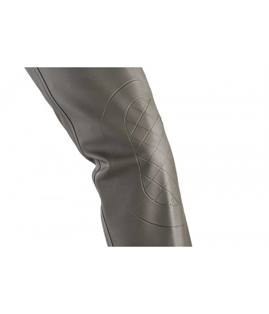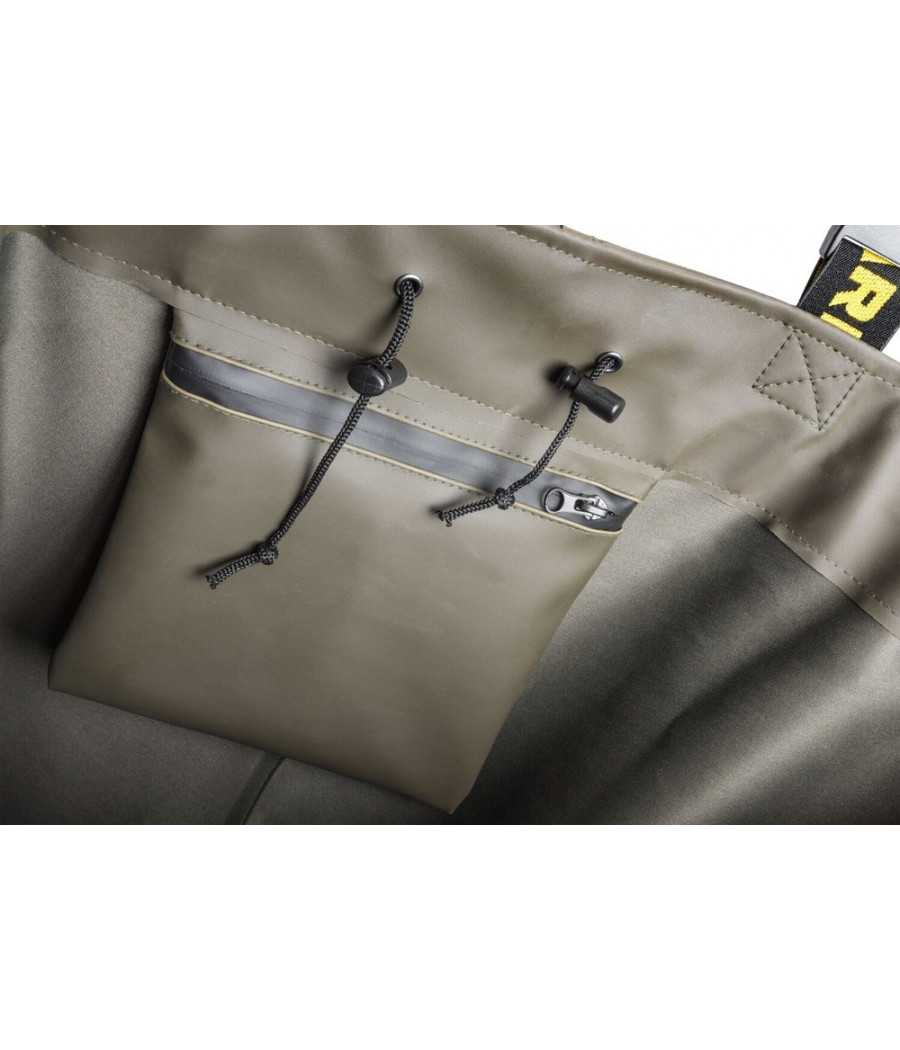 Materiál je mäkký, mierne pružný a mimoriadne pohodlný, čo zaisťuje maximálnu voľnosť pohybu. Robustné topánky sú vybavené protišmykovou podrážkou a špeciálne tvarovanou pätou s hlbokými výstupkami pre jednoduché a rýchle vyzúvanie. Všetky švy sú starostlivo zatavené a zaisťujú 100% vodotesnosť. Zosilnené oblasti na kolenách poskytujú dodatočnú ochranu bez objemných vonkajších záplat, ktoré by sa mohli časom uvoľniť. Tieto broďáky spájajú funkčnosť a komfort — nechýba nastaviteľná sťahovacia šnúrka, vodotesné vnútorné vrecko s utesneným zipsom a pohodlné traky s tkaným logom. Dodávajú sa v kvalitnom prepravnom obale s pevnými popruhmi odolnými voči vlhkosti aj nečistotám - pripravené vyraziť kamkoľvek, kam vás zavedie vaše dobrodružstvo.