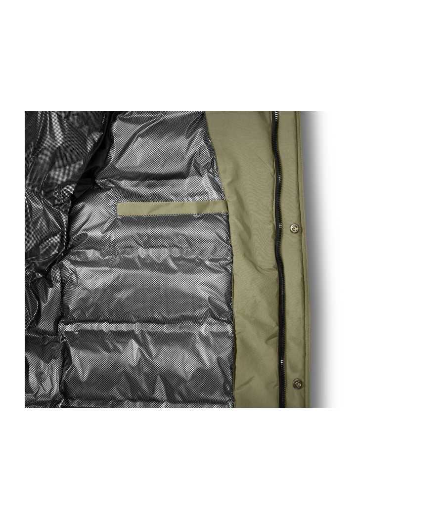 Spodný lem bundy možno stiahnuť gumičkou z oboch strán, čo zvyšuje tepelnú izoláciu, chráni chrbát a najmä kríže pred vetrom. Po stranách sa nachádzajú priestranné vrecká so zipsom, ktoré vďaka špeciálnemu šitiu poskytujú dostatok miesta na uschovanie napríklad termosky s teplým čajom. Vo vnútornej časti sa nachádza praktické vrecko vhodné na doklady alebo iné cennosti.