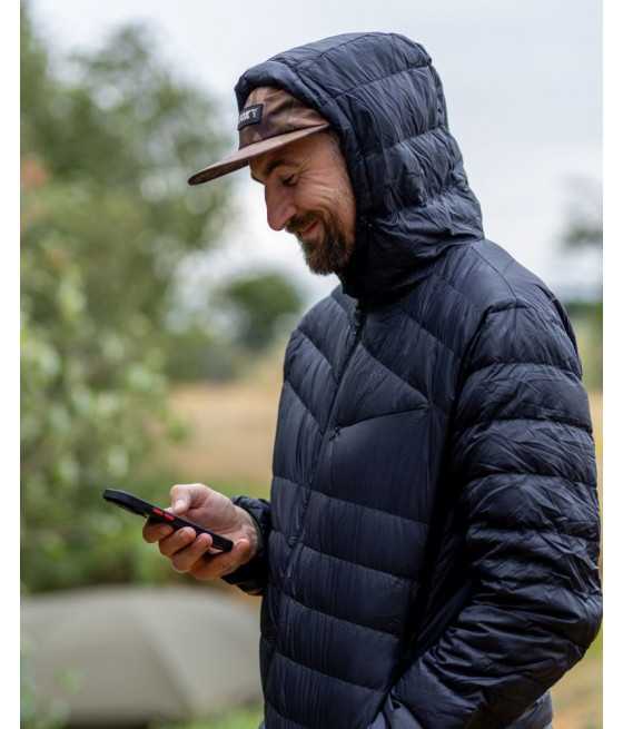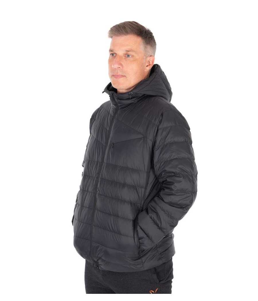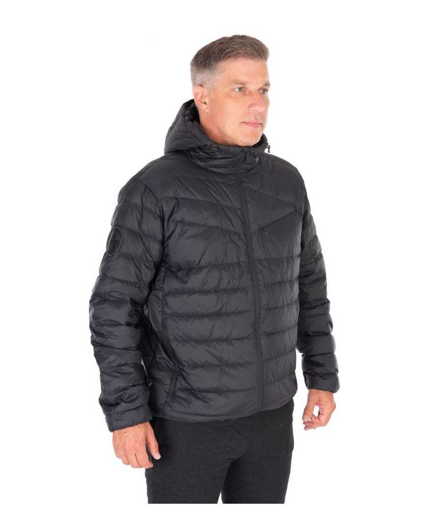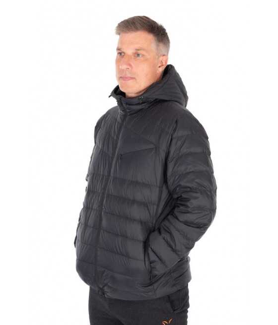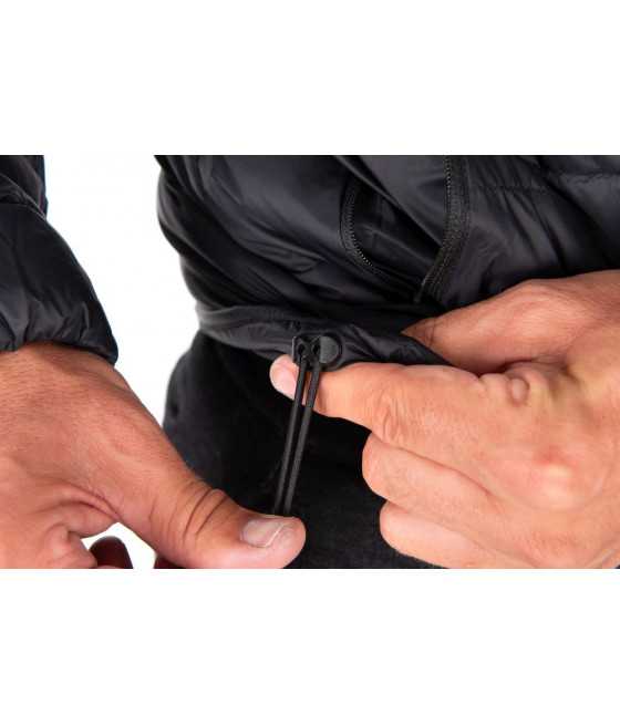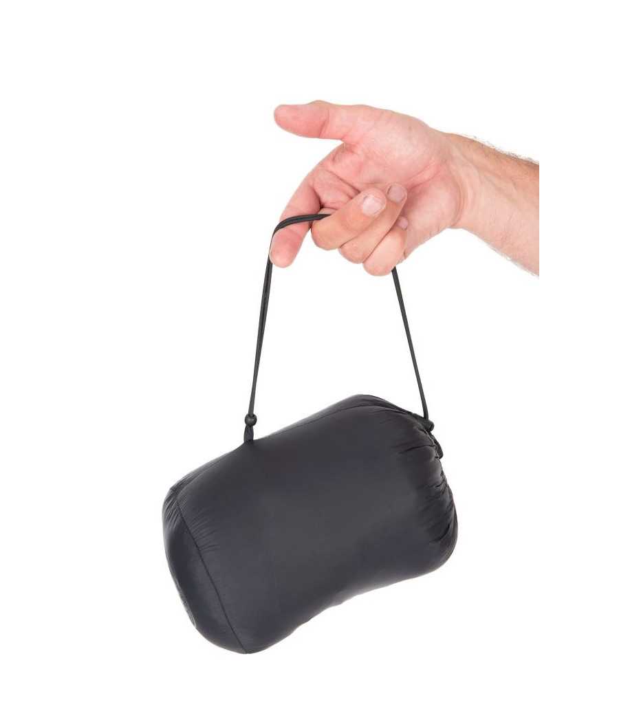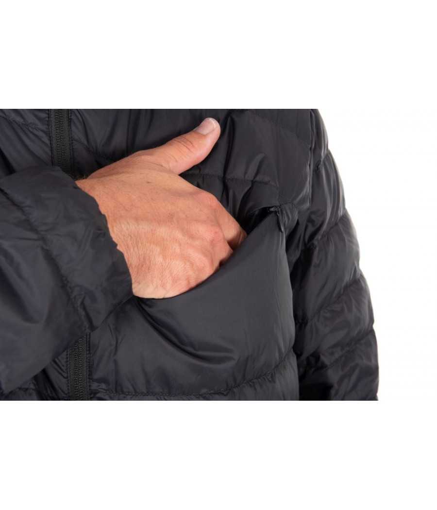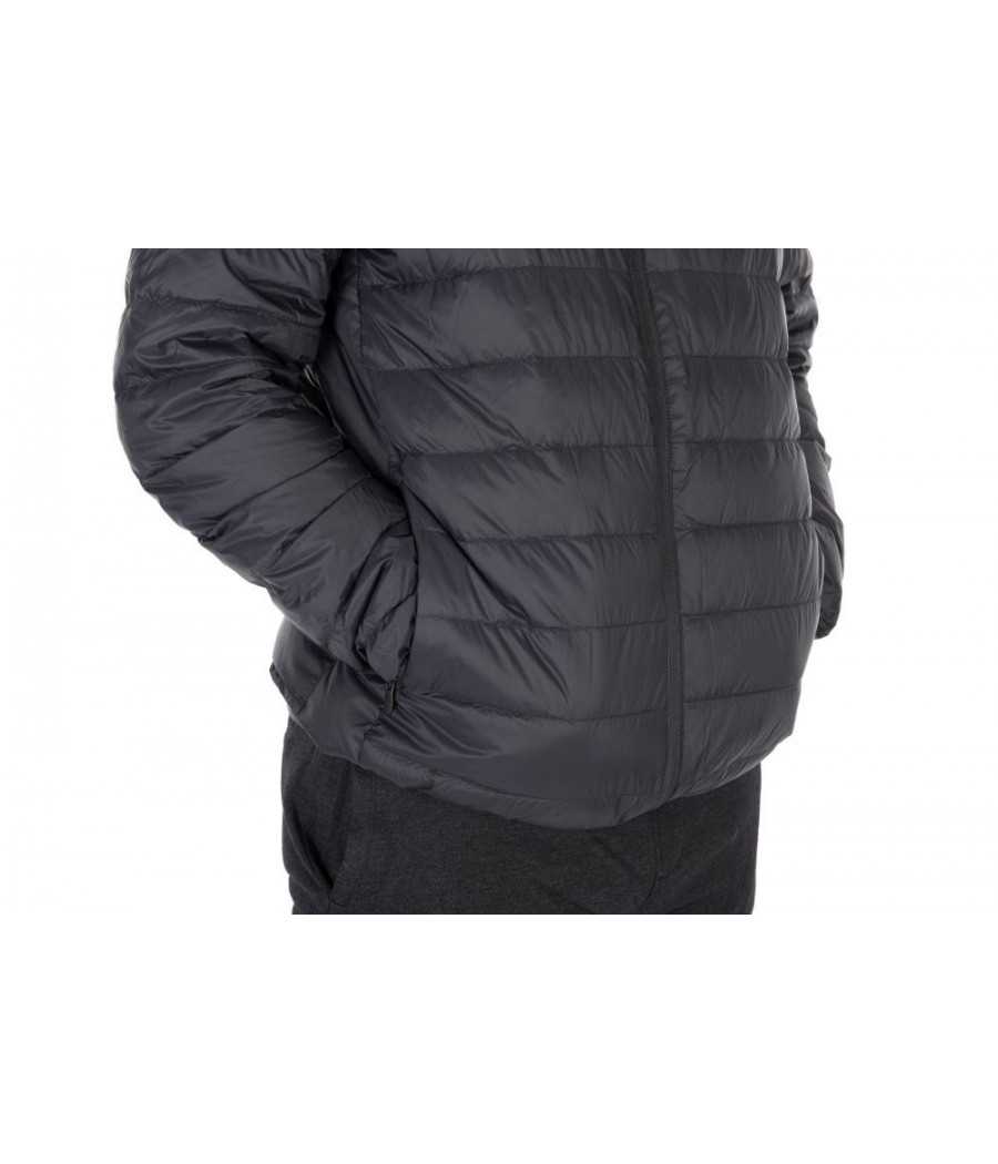 Perová bunda, ktorú je možné zabaliť do malého prenosného vrecka.