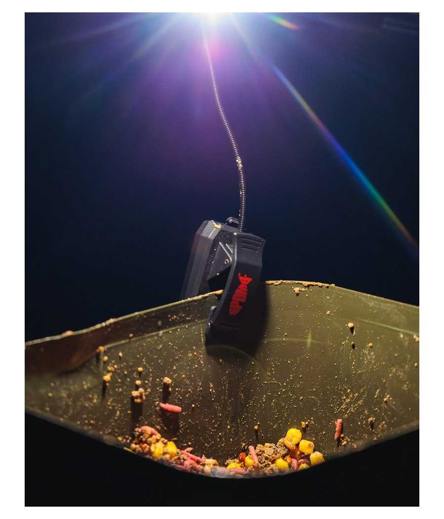 Svetlo, ktoré klipom pripnete ku vedre a osvietite si vašu návnadu a miesto na plnenie Spombu.