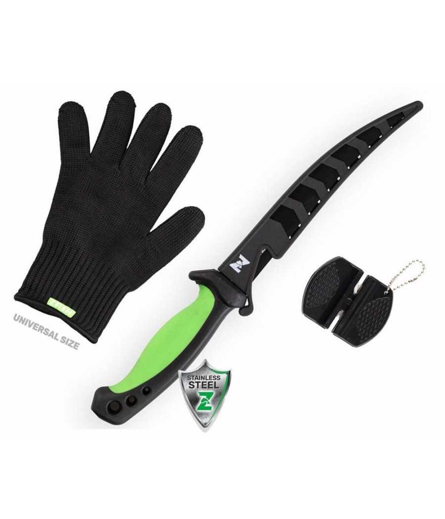 ZFISH Fillet Combo Set je combo sada zložená z kvalitného filetovacieho noža s pevným ochranným puzdrom, silných rukavíc z kevlarového vlákna proti porezaniu a brúsku na nôž.