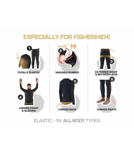 Termo tričko disponuje dlhými rukávmi, ktoré pomáhajú udržať tepelný komfort aj pri chladnom počasí pri vode. Predĺžený materiál v zadnej časti zaisťuje lepšie krytie chrbta pri sedení aj pohybe a prispieva k dokonalej ochrane pred chladom. Vďaka pohodlnému strihu, ktorý neškrtí, sa tričko príjemne nosí po celý deň a nijako neobmedzuje pri rybárčení ani bežných pohyboch.