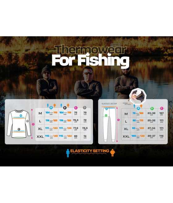 Materiál je mäkký, príjemný na dotyk a dostatočne priedušný, takže sa pohodlne nosí aj dlhšiu dobu. Vďaka pružnému prevedeniu sa termobielizeň dobre prispôsobí postave, neobmedzuje v pohybe a umožňuje sústrediť sa plne na rybárčenie bez nepríjemného chladu.