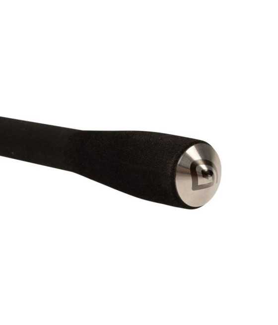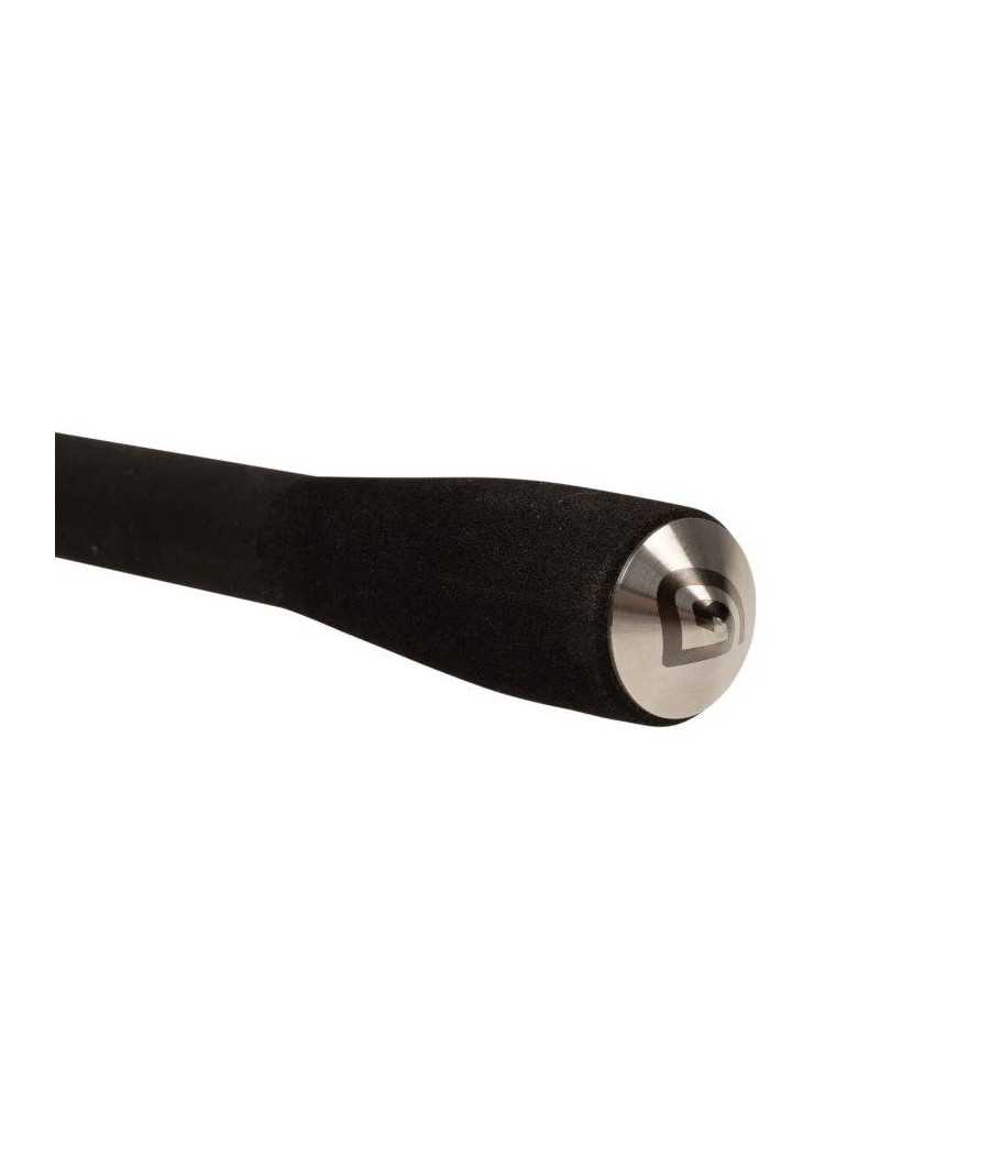 Rukoväť je potiahnutá kvalitnou japonskou zmršťovacou fóliou, ktorá drží iste v ruke aj za mokra, a je doplnená krátkym, pohodlným EVA zakončením pre pevnejšiu oporu pri súboji. Funkčnosť aj vzhľad podčiarkujú doplnkové nerezové krúžky a laserom leptaná kónická koncovka, ktoré pridávajú odolnosť a čistý finiš. Prút je dodávaný v elegantnom čiernom bavlnenom obale, ktorý ho chráni pri preprave aj skladovaní.