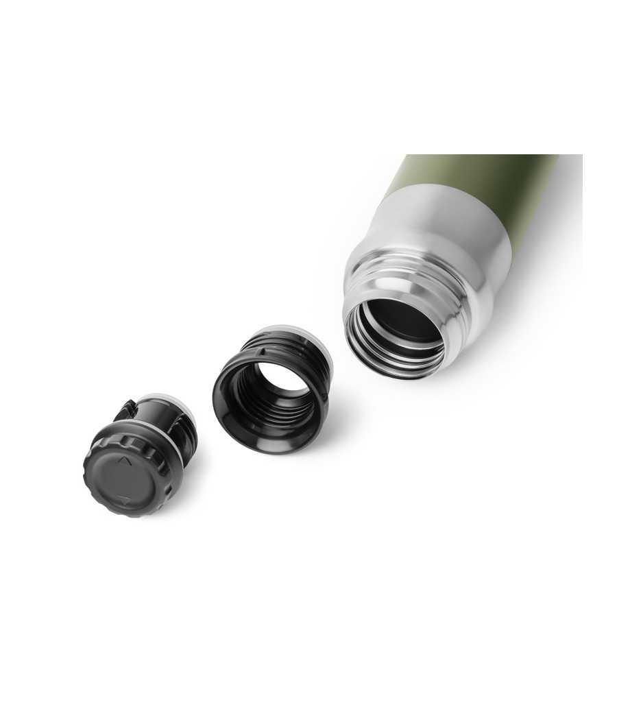 O dokonalé tesnenie sa stará prepracovaný uzáver, ktorý v zatiahnutom stave neprepustí ani kvapku tekutiny. Praktickým prvkom je vrchný uzáver termosky, ktorý po odskrutkovaní slúži ako plnohodnotná šálka. Nemusíte tak so sebou nosiť ďalší riad navyše, čo oceníte najmä pri balení na vychádzky, kde potrebujete čo najviac minimalizovať objem vašej výbavy.