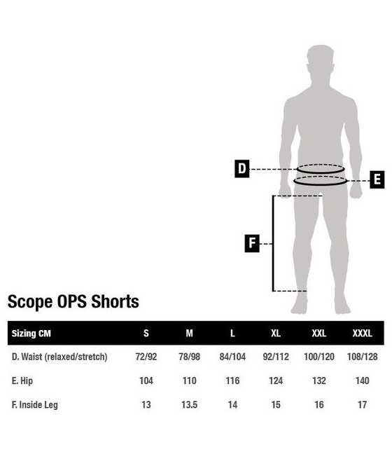 Kraťasy Scope OPS sú rýchloschnúce, majú vnútornú sieťovanú podšívku a sťahovaciu šnúrku v páse.
